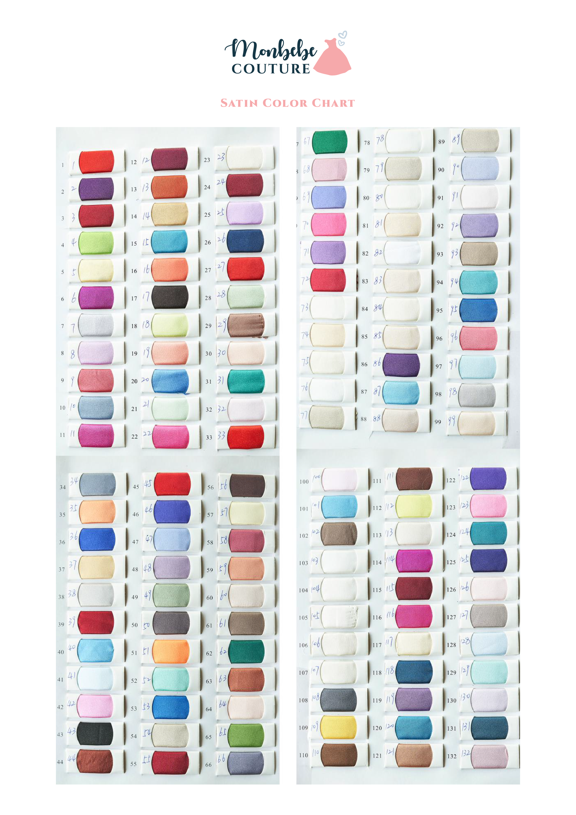 Should you need assistance choosing the right color for your dress, please contact us and we'll help you choose the perfect color combination.